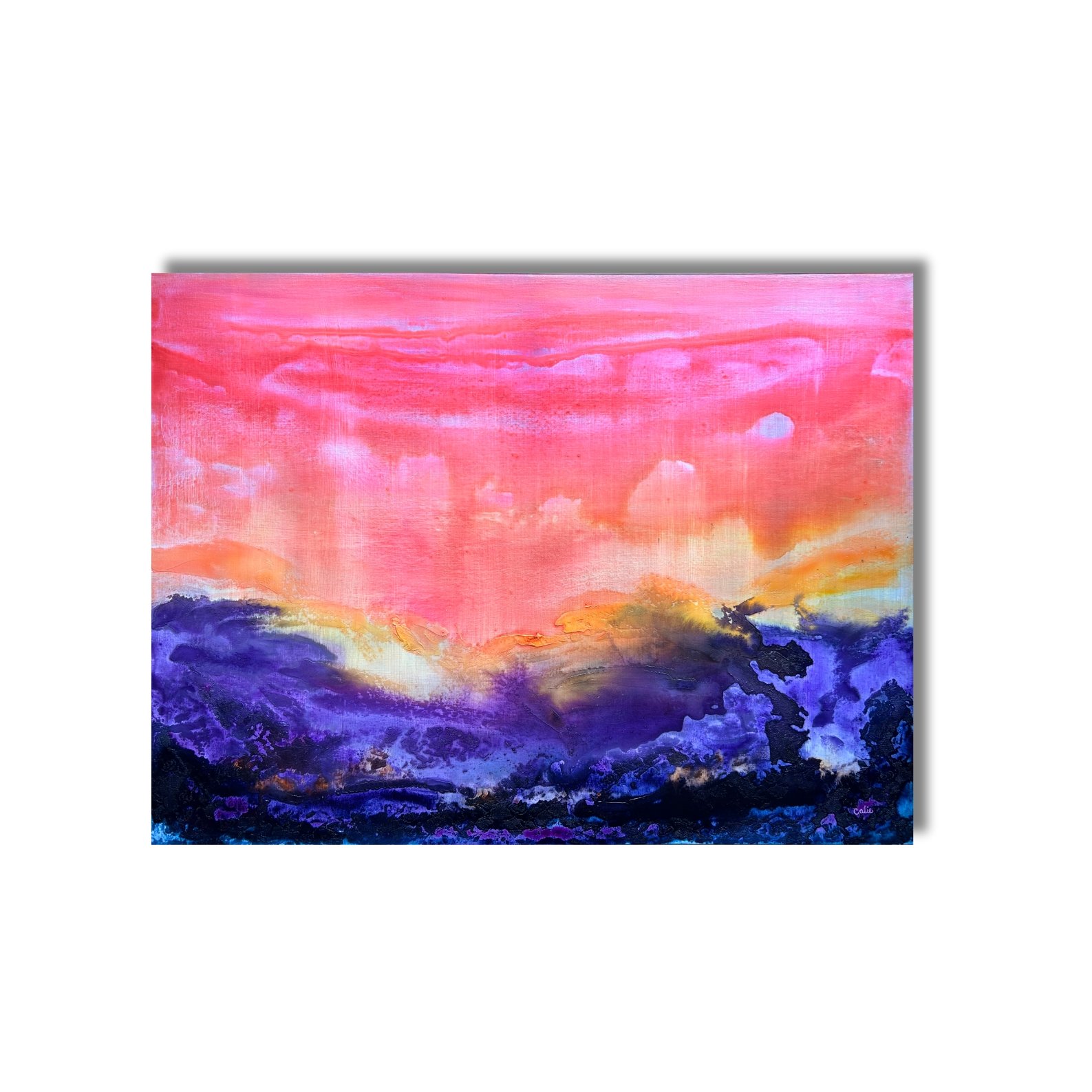 Cette toile « Phénix » aux couleurs vibrantes et textures s’inspire de la renaissance, du renouveau, de nouvelles expériences tentées dans la vie faisant le pont avec cet oiseau légendaire qui renaît de ses cendres.